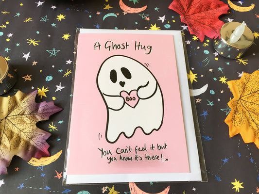 Cute Ghost Hug Card, Miss You Friend, Halloween