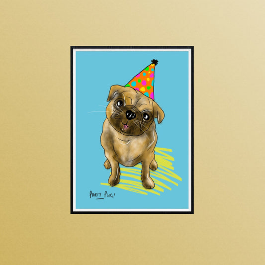 Party Pug A4 Print, Dog Lover Art