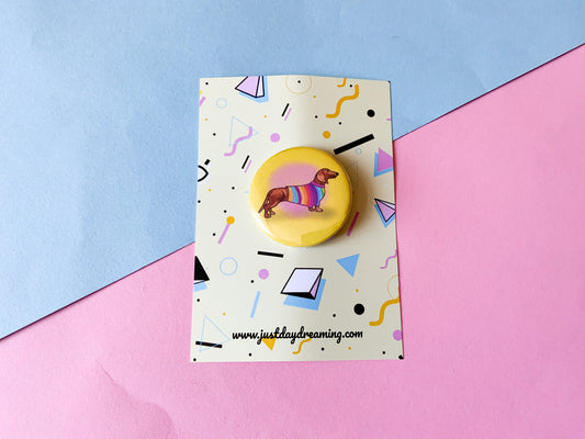 Rainbow Dachshund Badge, Cute Sausage Dog