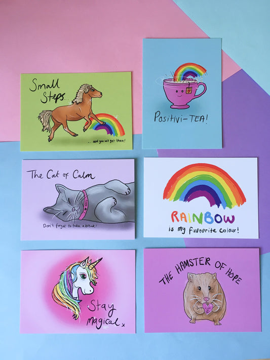 Motivational Quote Postcard Set, A6 Cute Animal Postcards
