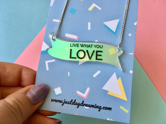 Live What You Love, Iridescent Acrylic Necklace