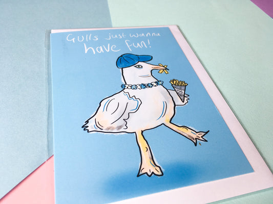 Seagull Greeting Card, Gulls Just Wanna Have Fun