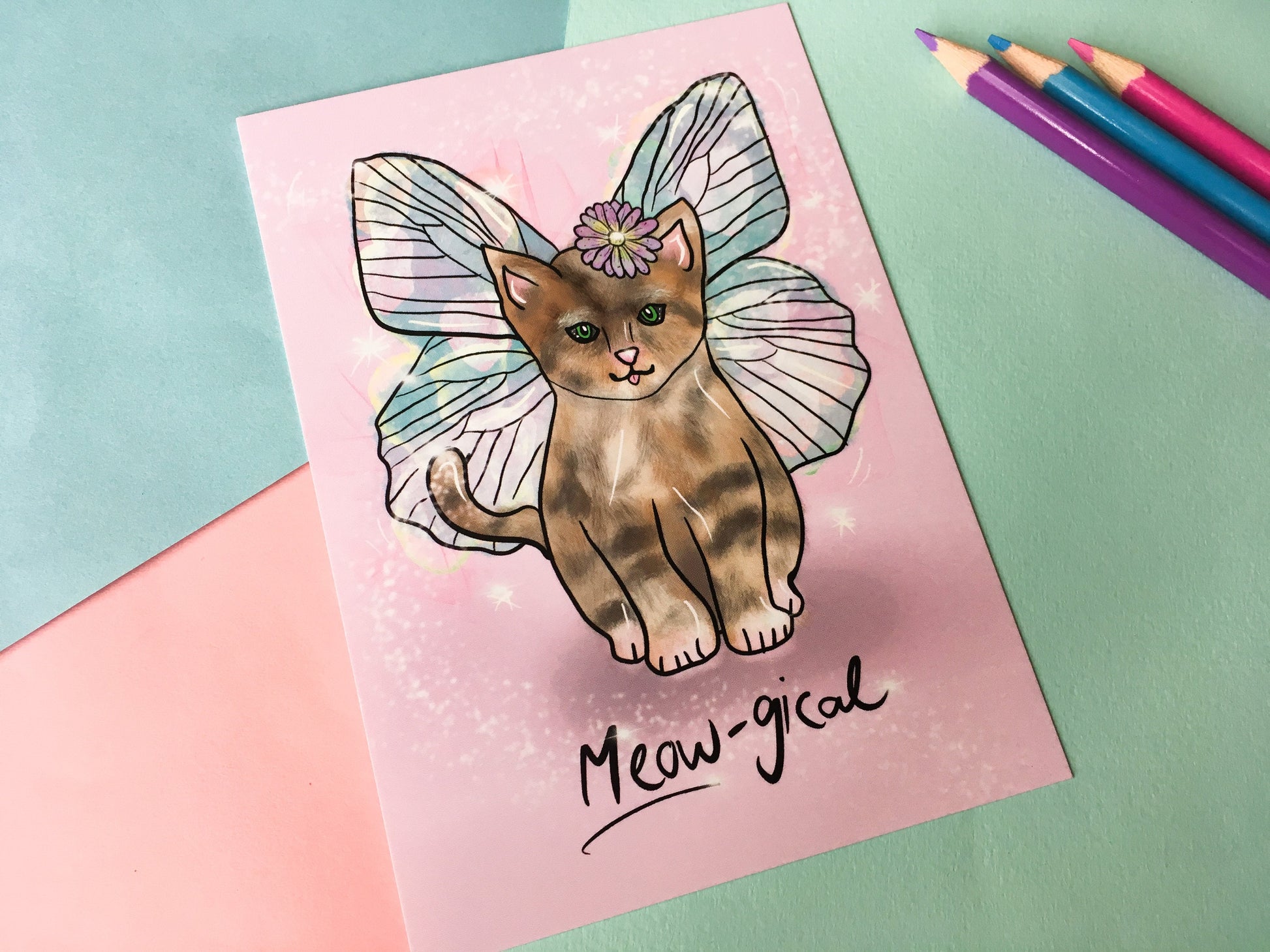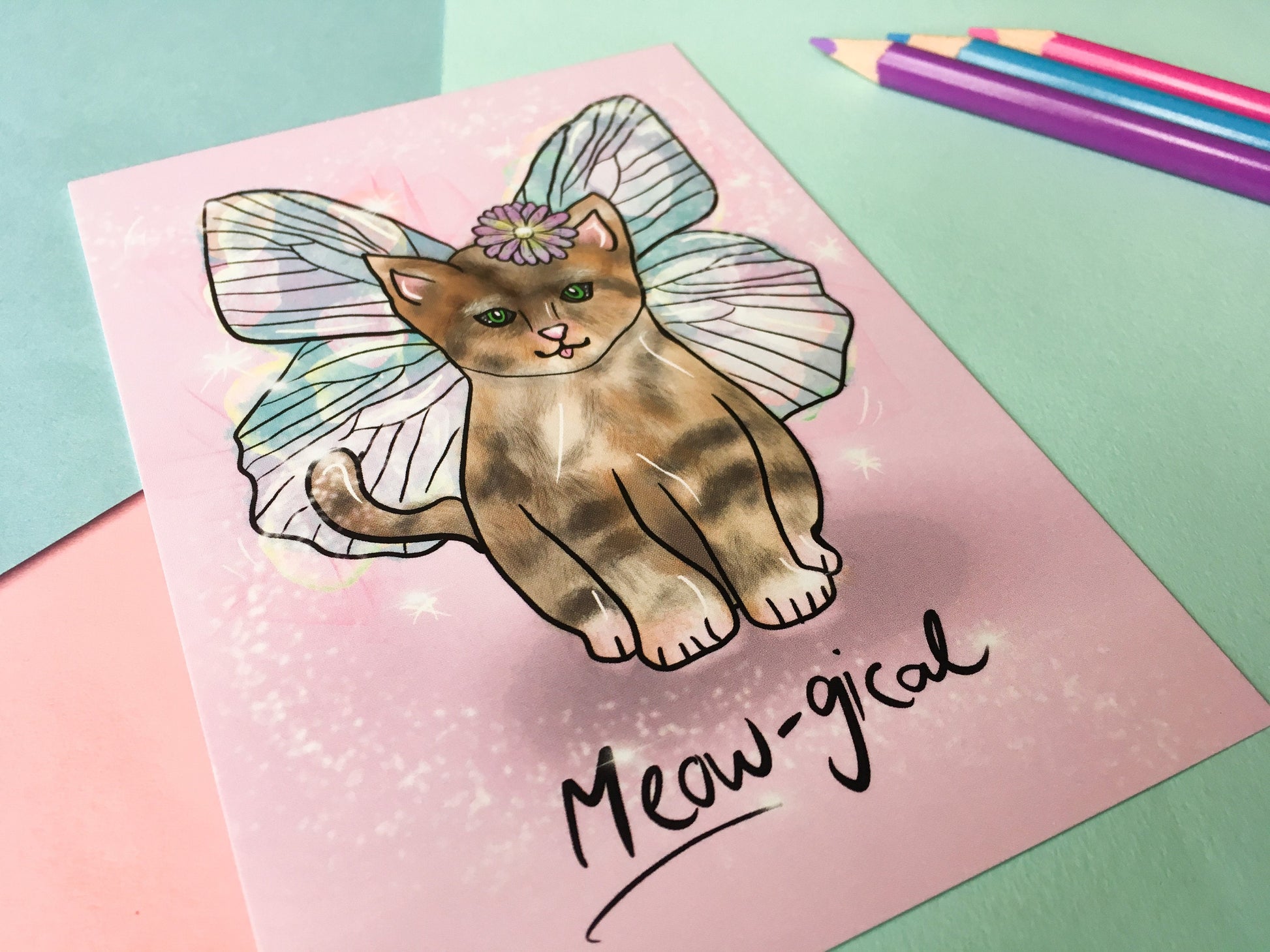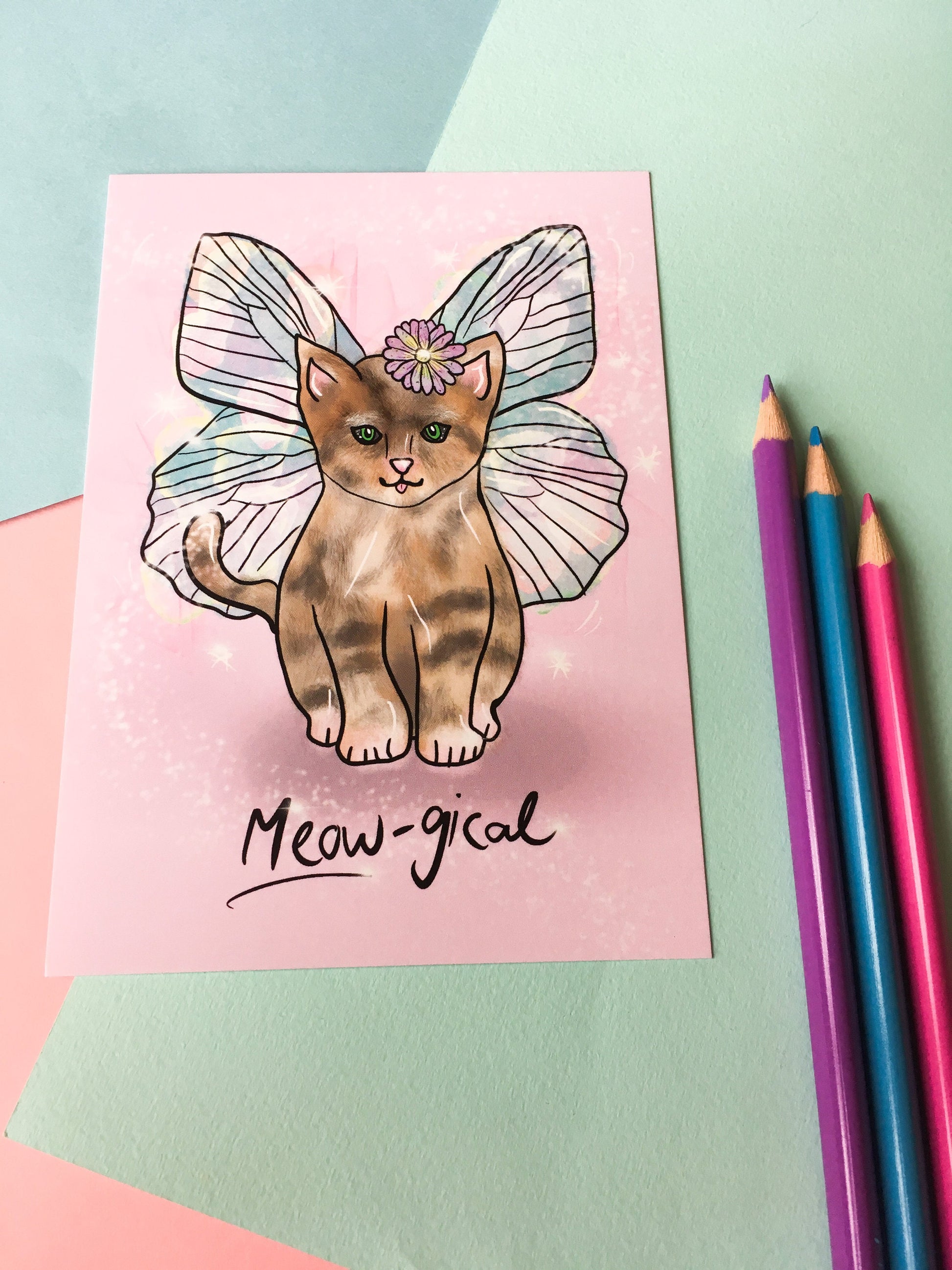 Meow-gical! This cute magical cat postcard is a lovely card to send to your most magically whimsical family or friends to let them know you are thinking about them.