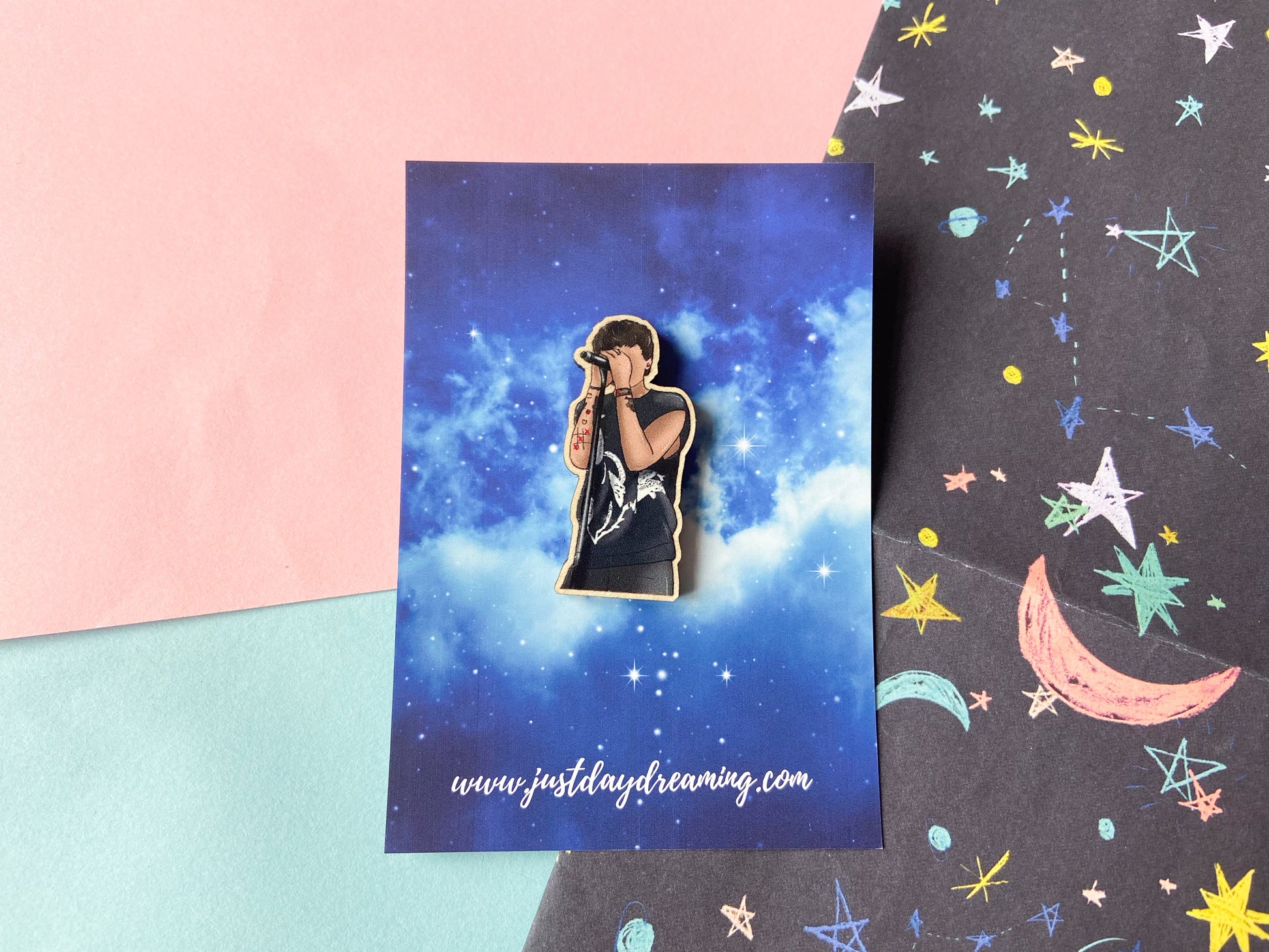 This Louis wooden pin brooch has landed for all our fellow fandom.
